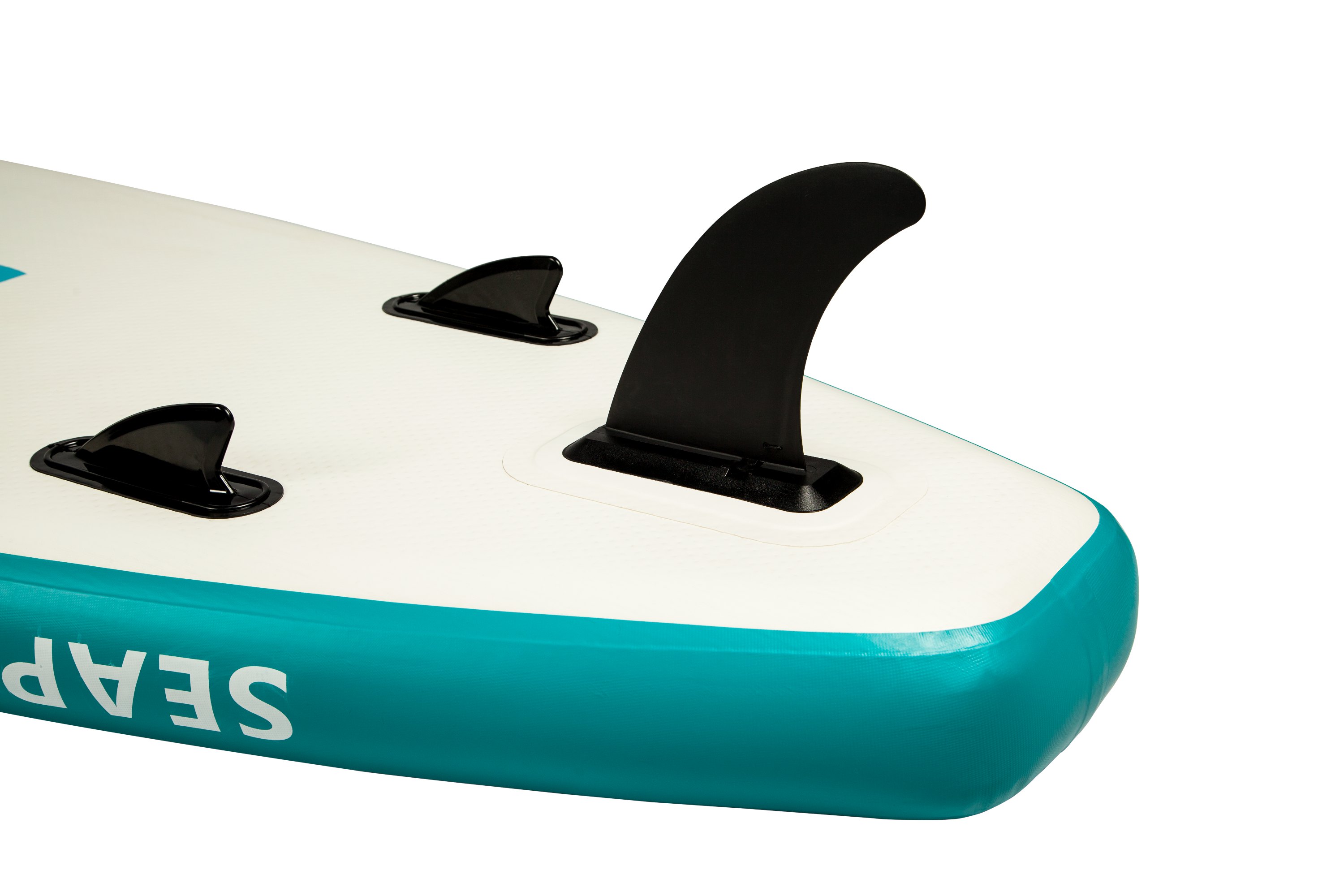 - 2 fest integrierte Skegs (Ruderleitflossen) und eine Vorrichtung für die Finne auf der Rückseite