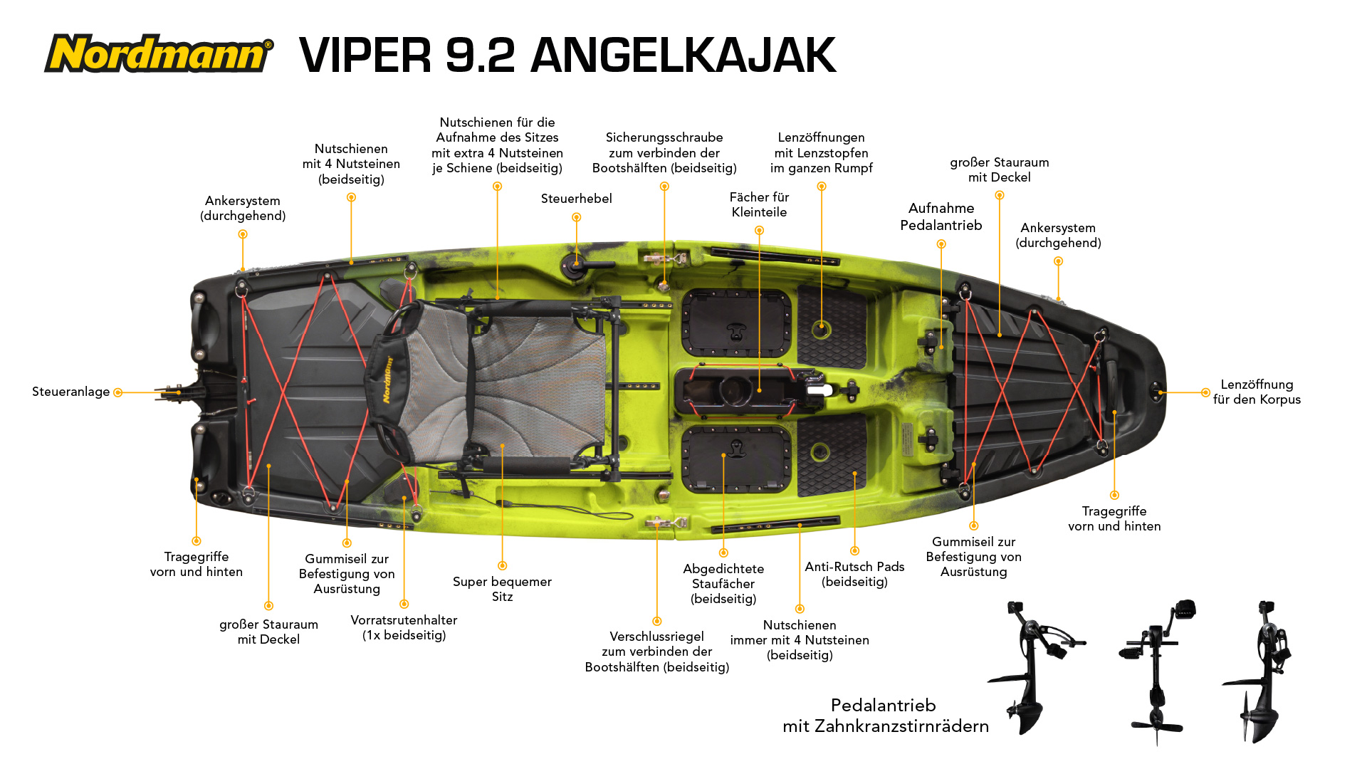 Nordmann® Viper 9.2 Angelkajak Sit on Top inkl. Zahnstangen-Pedalantrieb