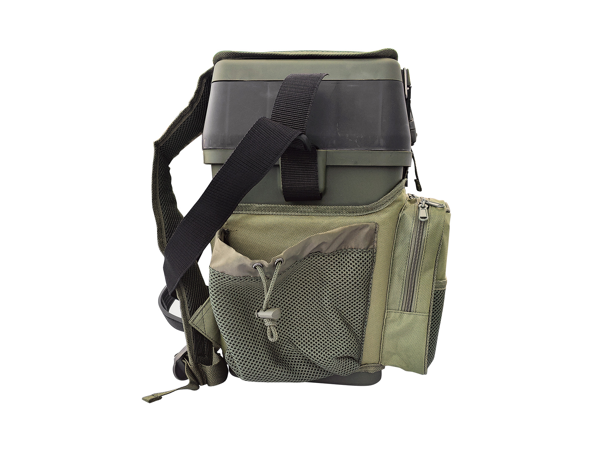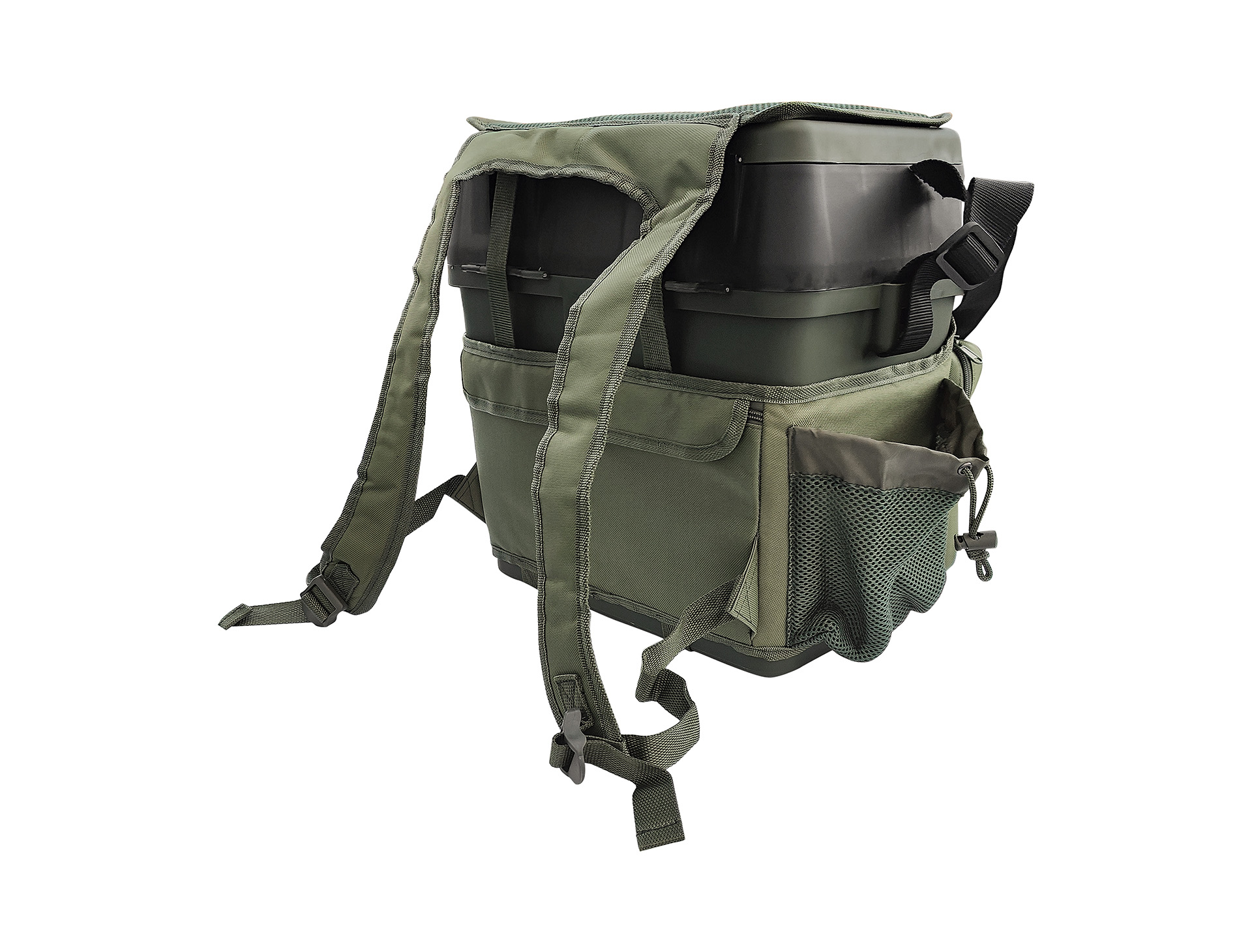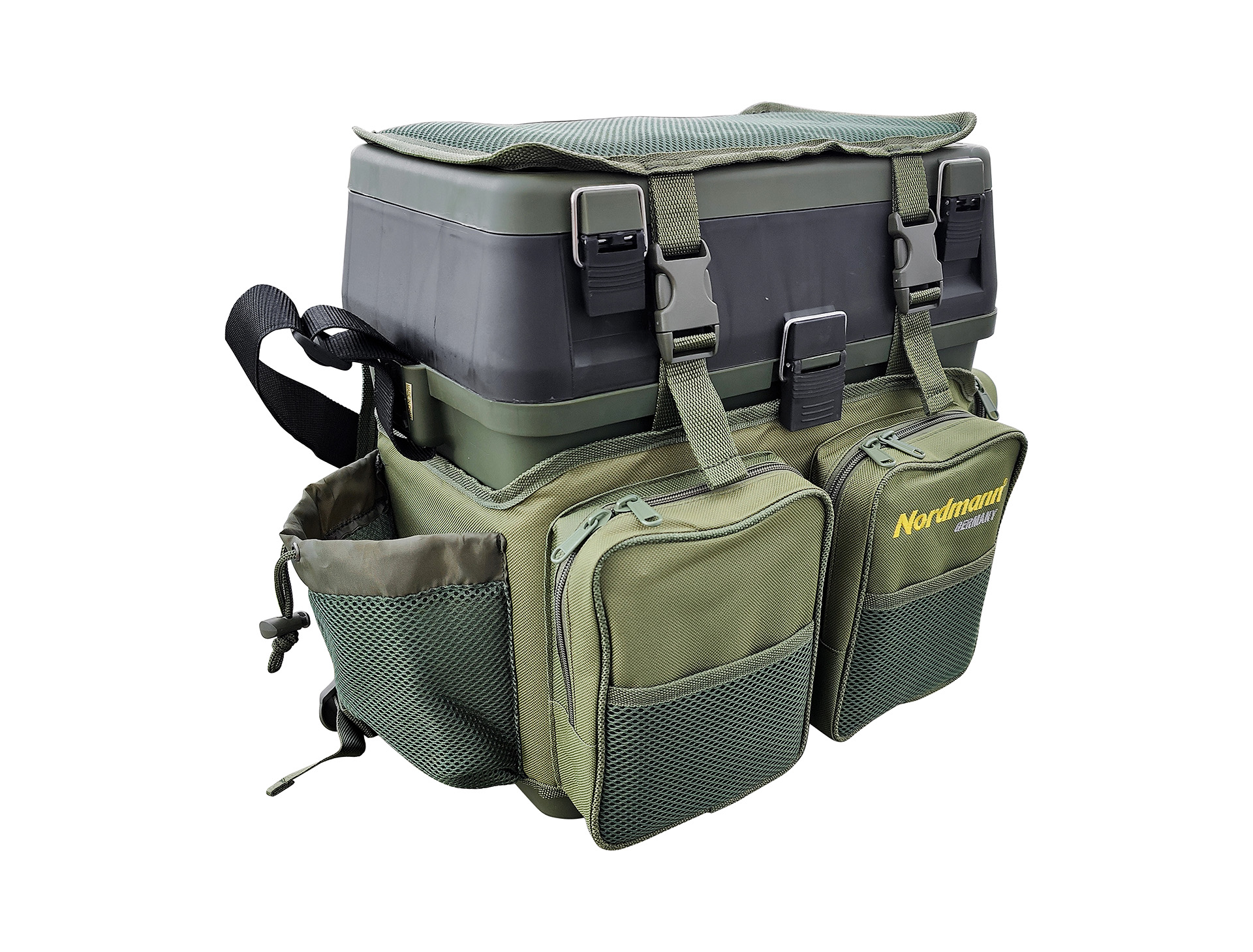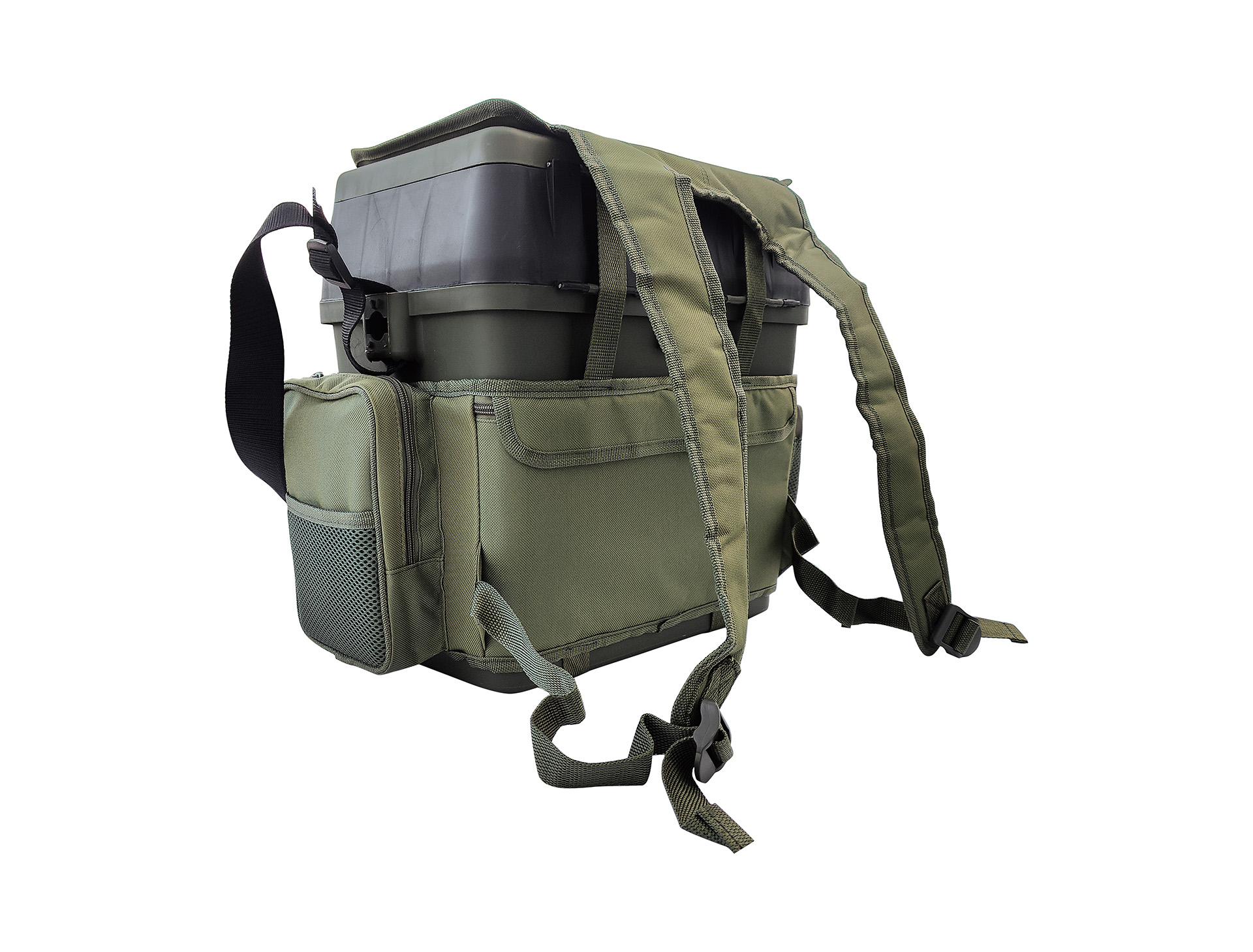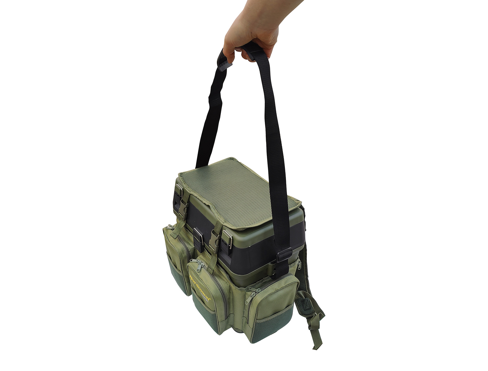 Sehr vielseitig – mittels der abnehmbaren Schulterriemen, lässt sich die Box ganz bequem als Rucksack und / oder eine Umhängetasche tragen, und, dank der Sitzauflage auf dem Deckel, sogar auch als ein Sitz nutzen! Die an den Schulterriemen befestigten zusätzlichen Taschen bieten weiteren Stauraum.